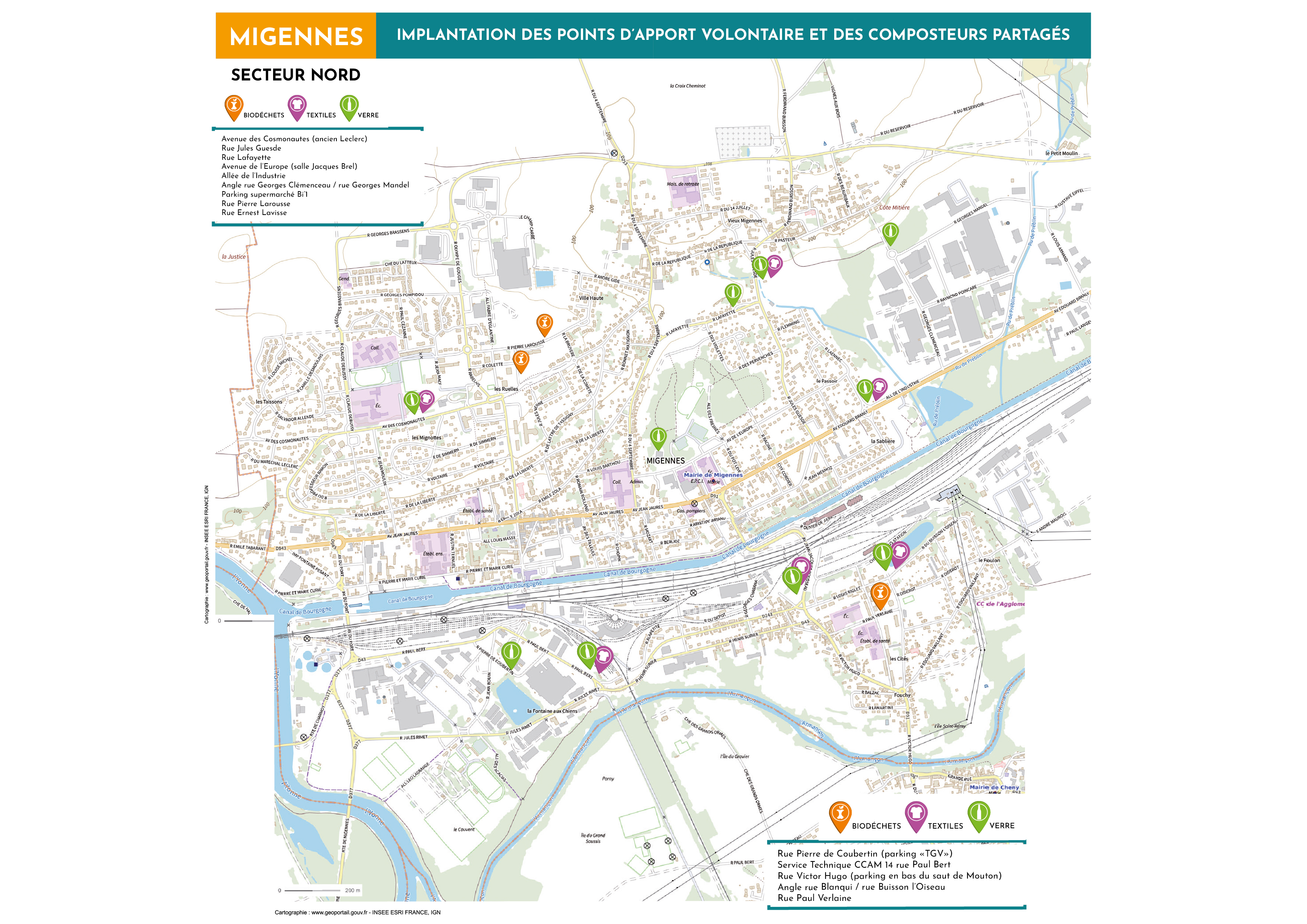 La communauté Communes de l’agglomération Migennoise met en place des sites de compostage partagé sur l'ensemble de son territoire. Emplacement des premiers composteurs partagés sur le territoire.